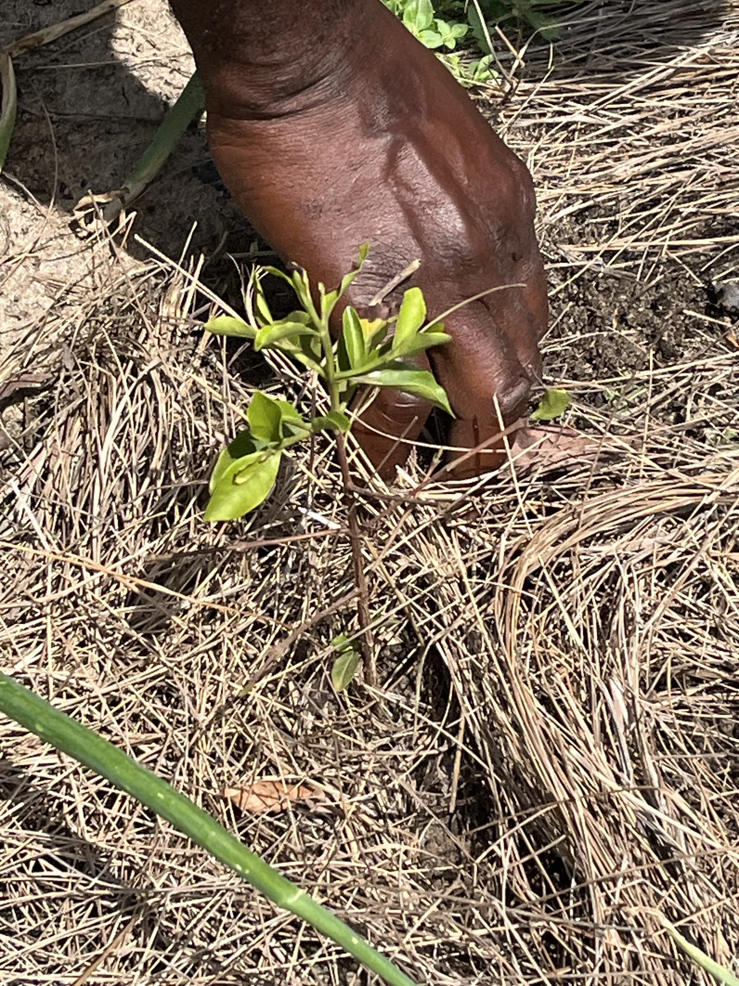 Preparing the soil with shared equipment (1/2 ha per family sector farmer per year) includes a good deal of biochar and live manure.
